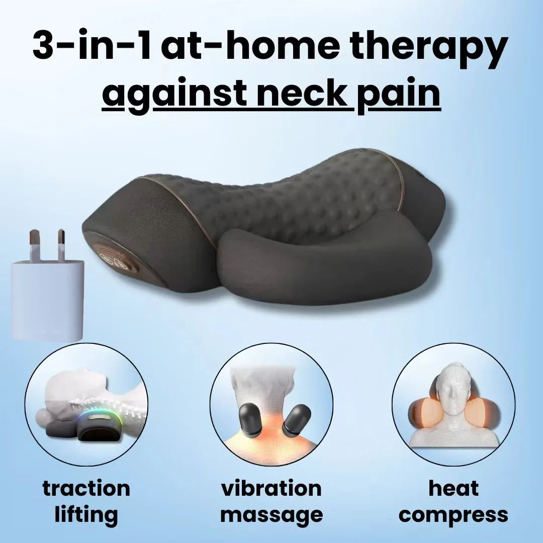 Relieve neck tension and enhance relaxation with the 3-in-1 Neck Massager. Combining memory foam comfort, hot compress therapy, and vibration massage, it supports neck and spine alignment while soothing stiffness. Perfect for home or office use, this versatile massager promotes comfort, relaxation, and improved well-being.